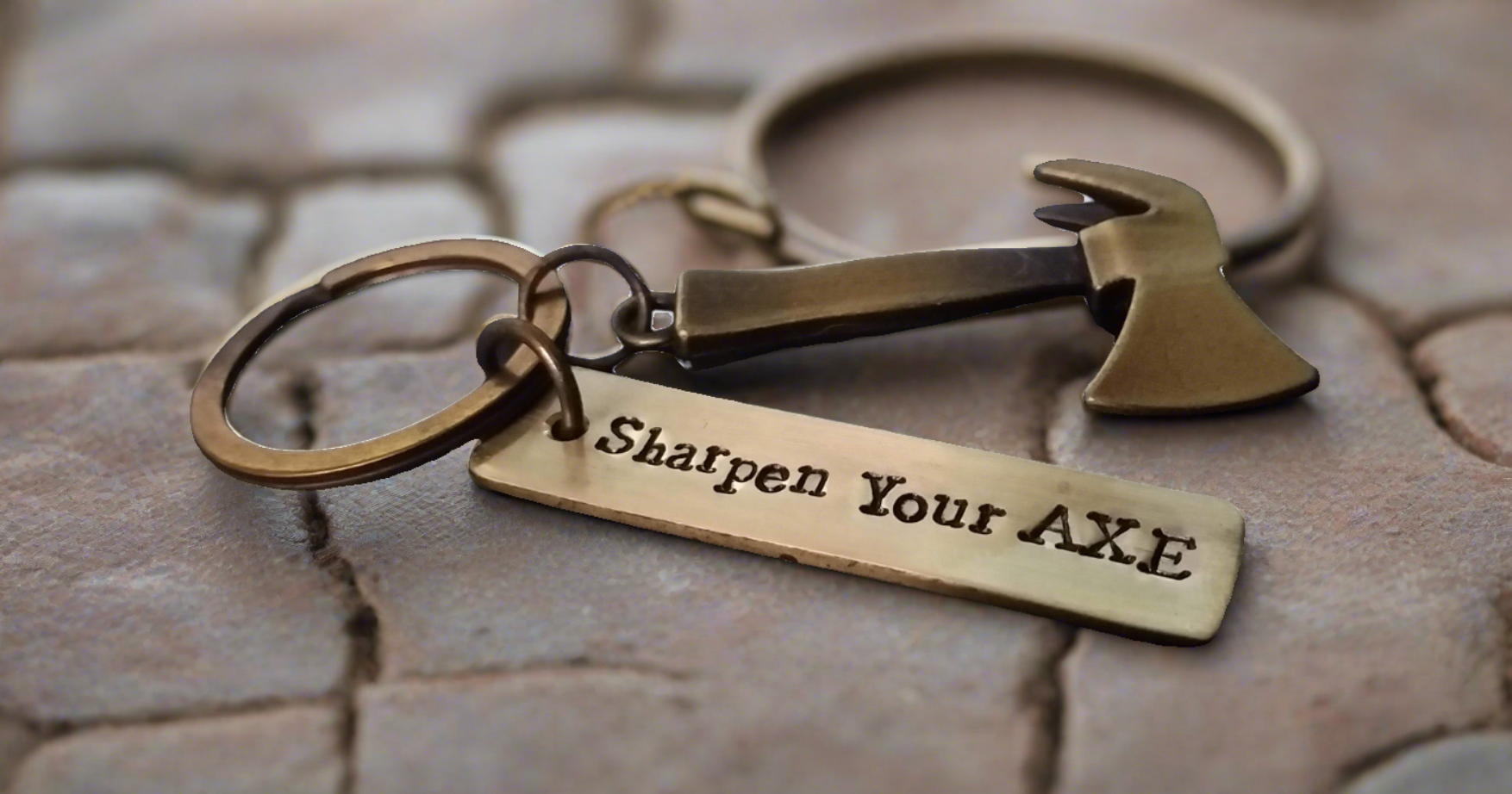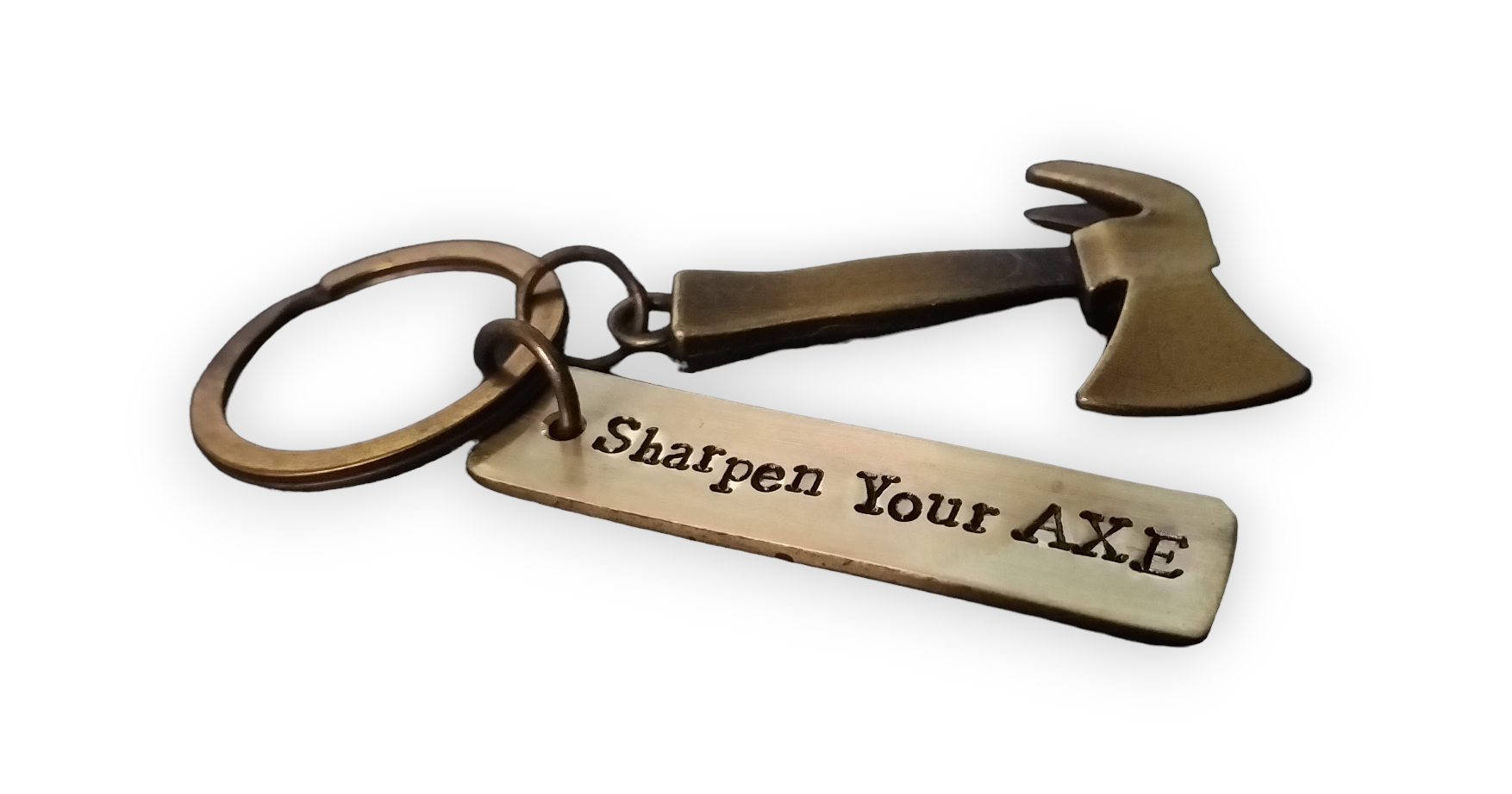 Streetsoul Sharpen Your Axe Keyring with stamped brass tag 2 inches length.