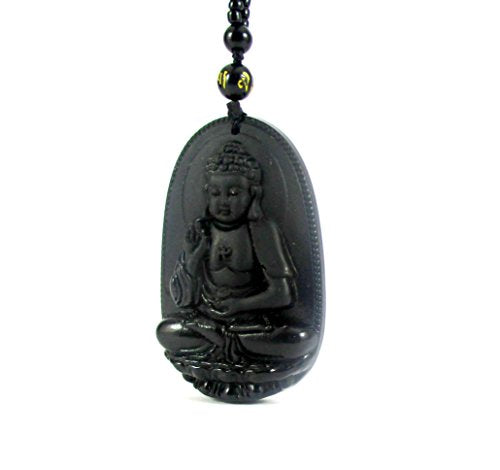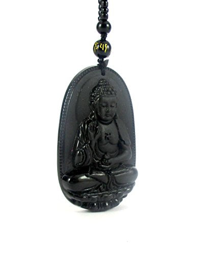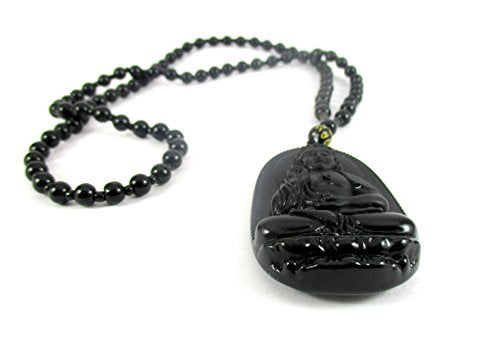 Details: An elegant black neck wear with Buddha pendant. Made of glass, the pendant is brittle. the finishing is matte on top and glossy at the bottom. Length is 26 inches of the bead chain, end to end. Weight 70 gms. pendant width is 1.5 inches and height is 2.5 inches.