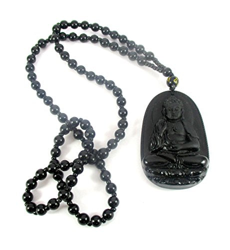 Streetsoul Glass Buddha Black Matte Gloss Bead Necklace Gift for Men.
