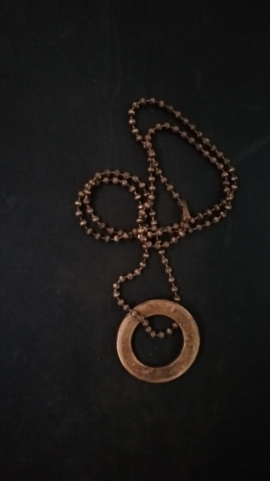 This FARZI inspired Oxidized Brass chain and pendant provides a truly unique look. The oxidized brass adds a rustic, vintage charm to any outfit. This necklace is both stylish and durable, making it a great addition to any jewelry collection.