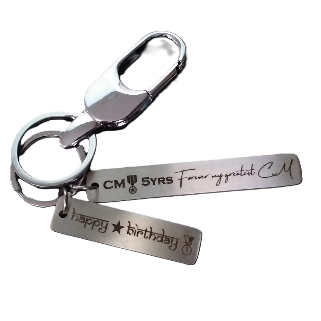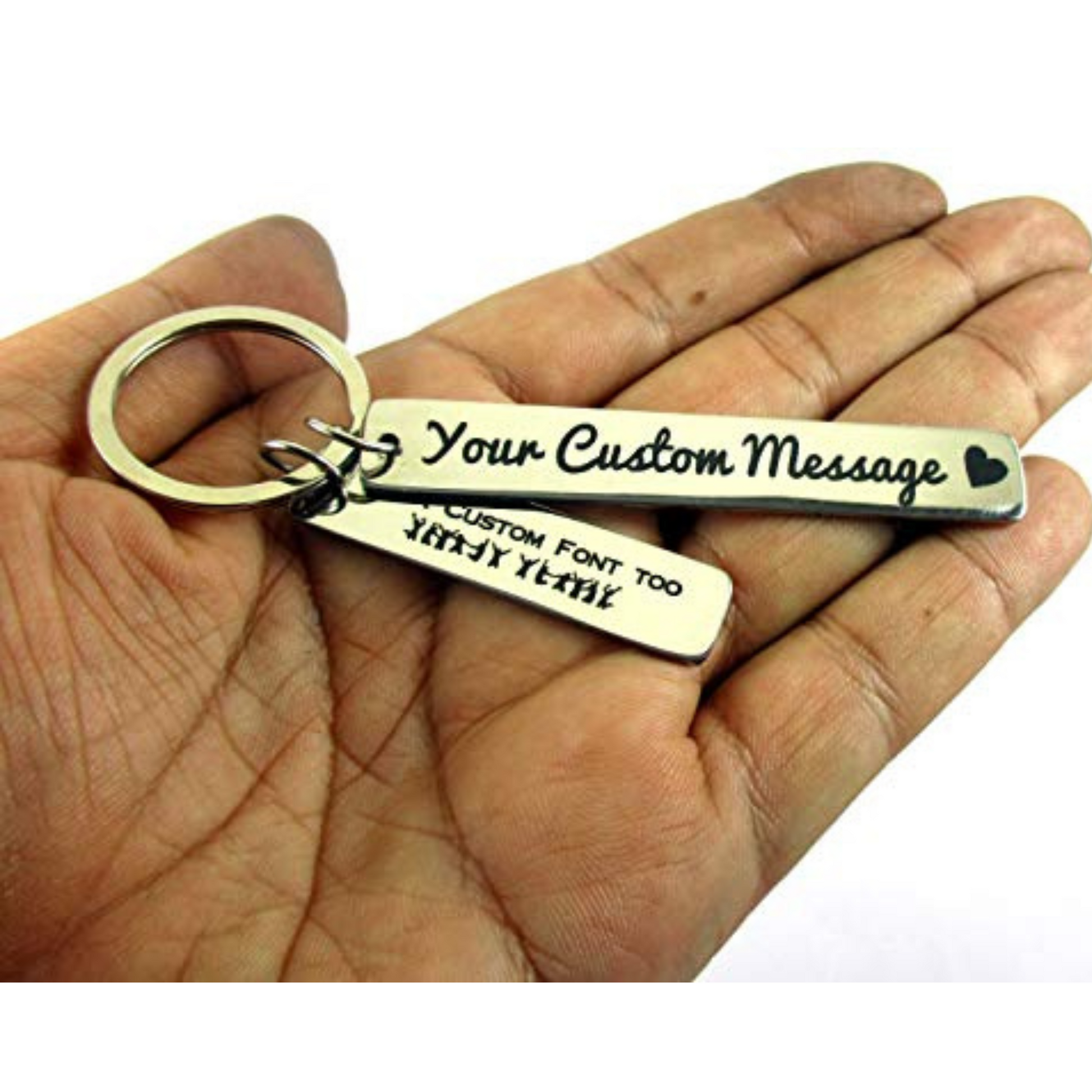 - A gorgeous Stainless Steel Key chain, 12mm wide (3 inches & 2 inches) long Steel key ring with your own personal message.