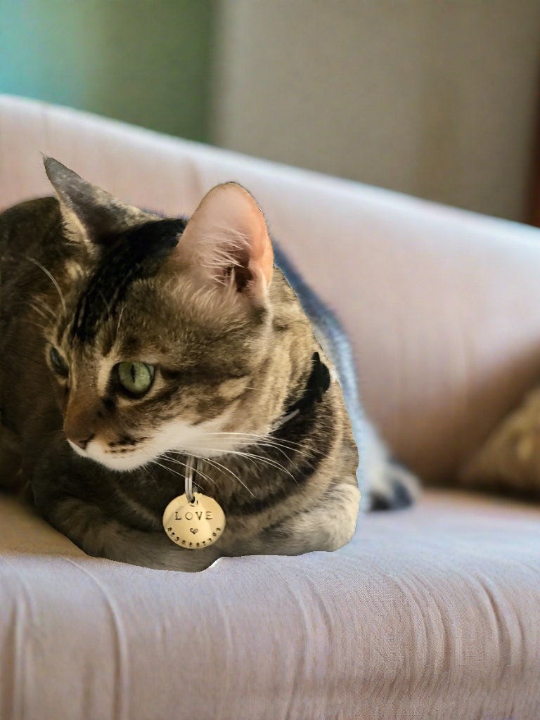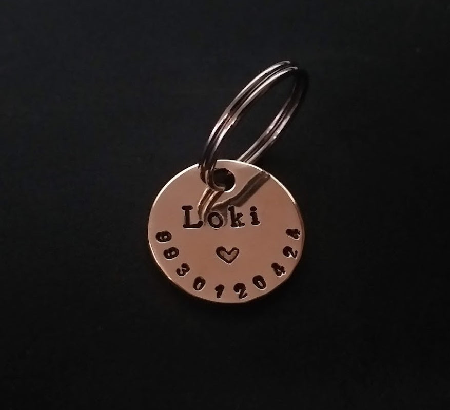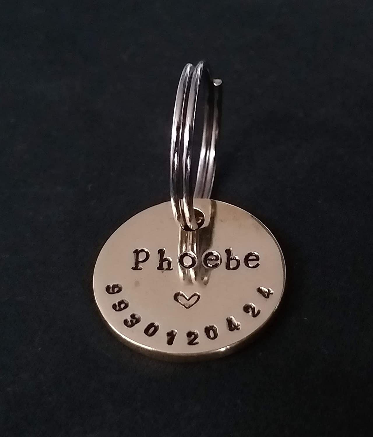 Custom Dog Name Tags Pet ID Hand Stamped Circular Shaped Tag for Small Pet Dog, Cat ID Customized Dog Tag (Brass)