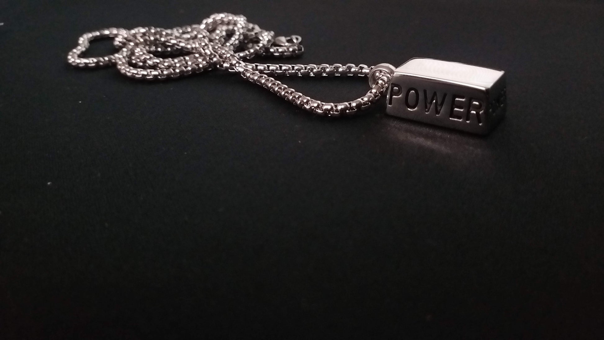 This stainless-steel pendant and long chain provide a stylish and powerful look for men or boys. Crafted from stainless steel for superior durability, the POWER pendant makes the perfect accessory for any outfit.