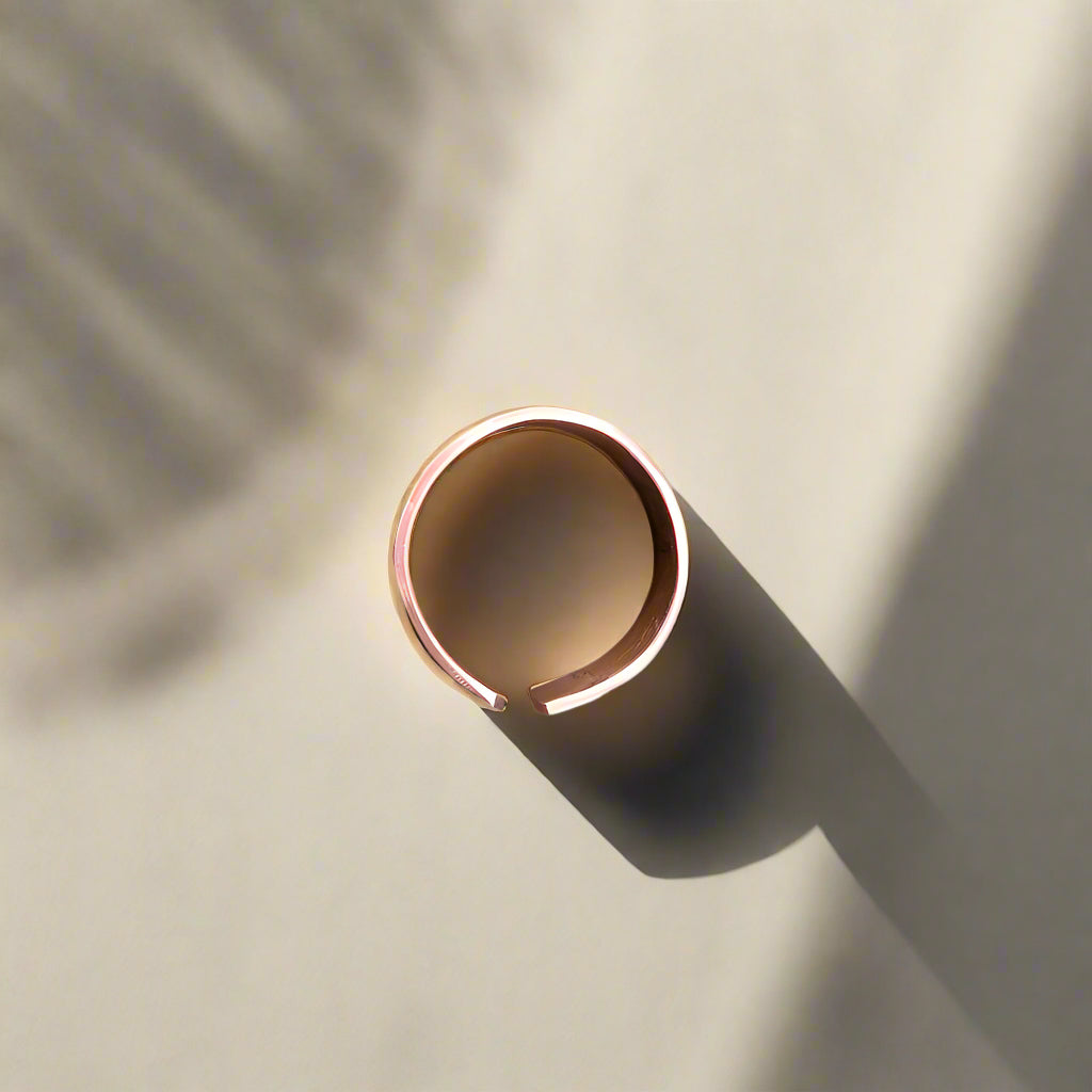 Copper’s natural beauty meets durability in this understated piece. Whether worn alone for a clean, modern look or stacked with other rings for a personalized touch, its smooth, polished surface and lightweight feel make it ideal for daily wear. The metal’s inherent malleability allows for easy resizing.