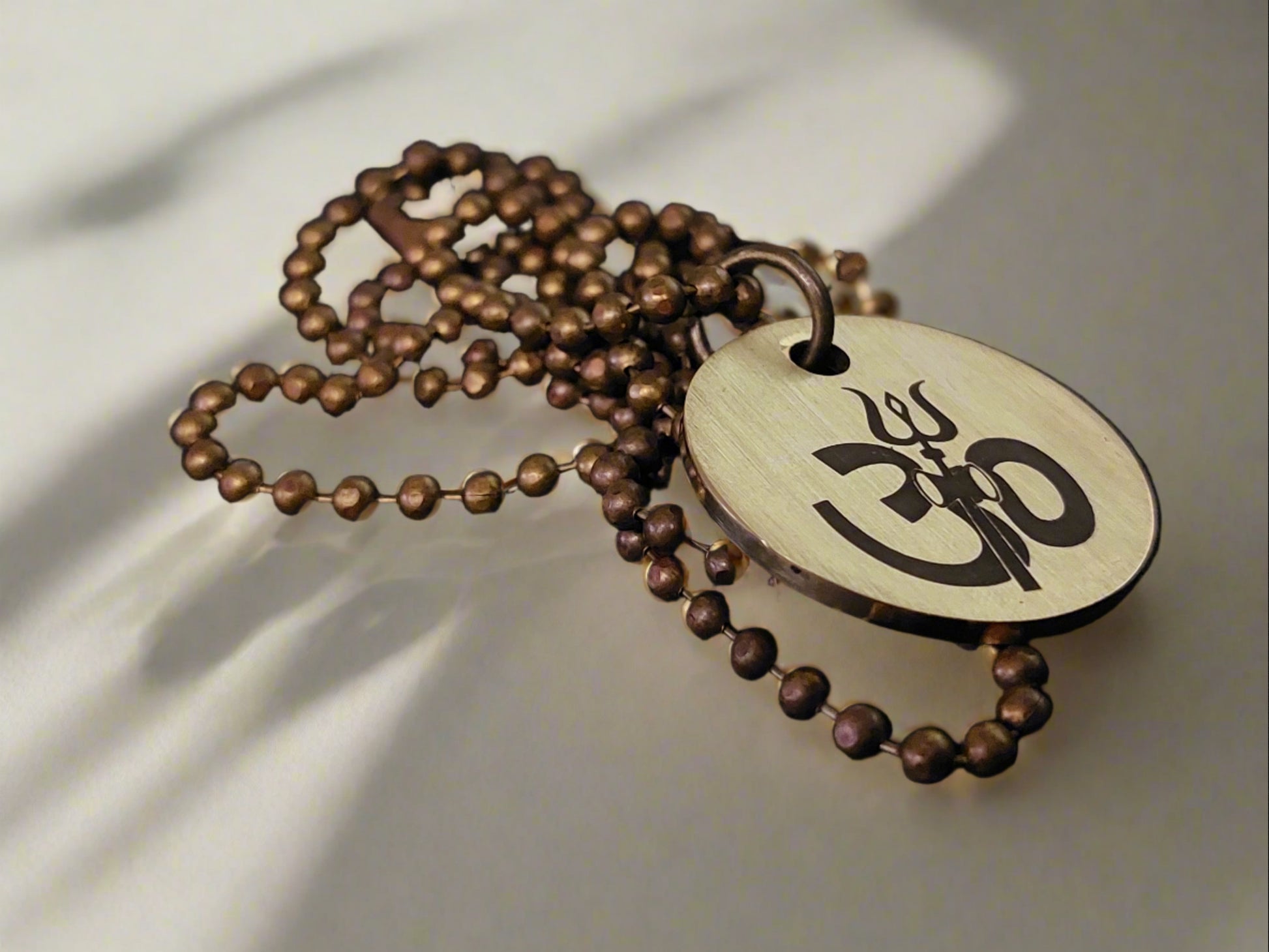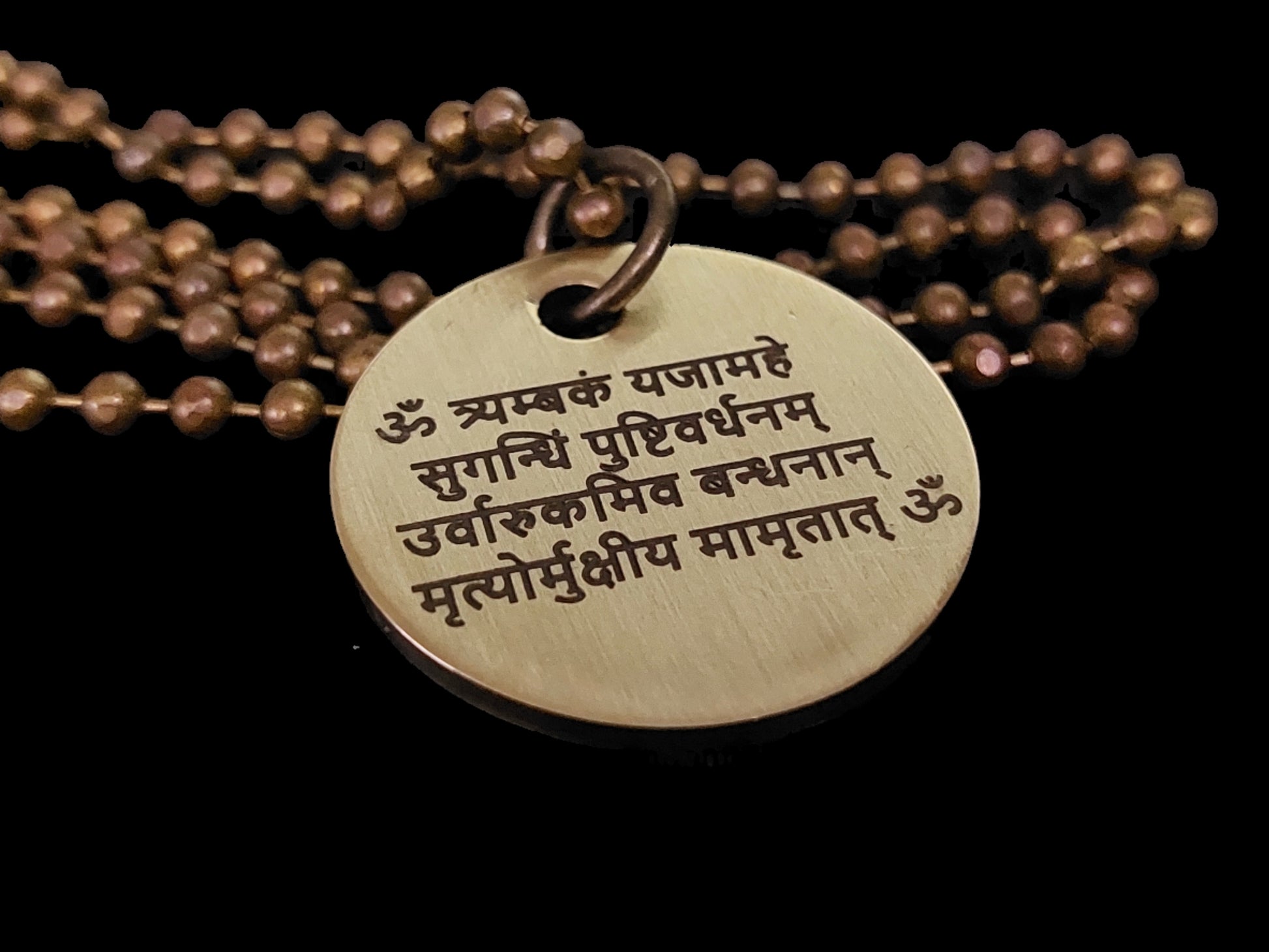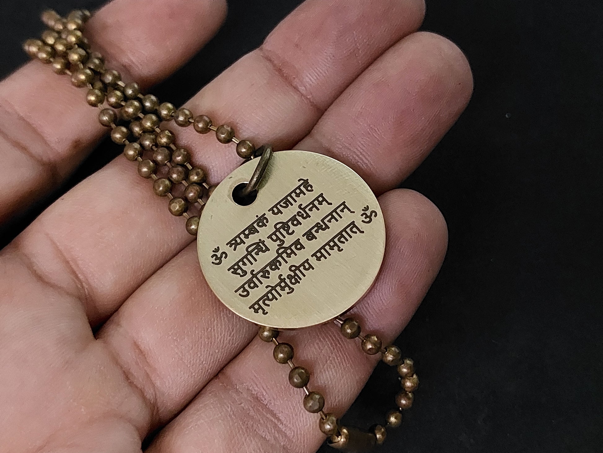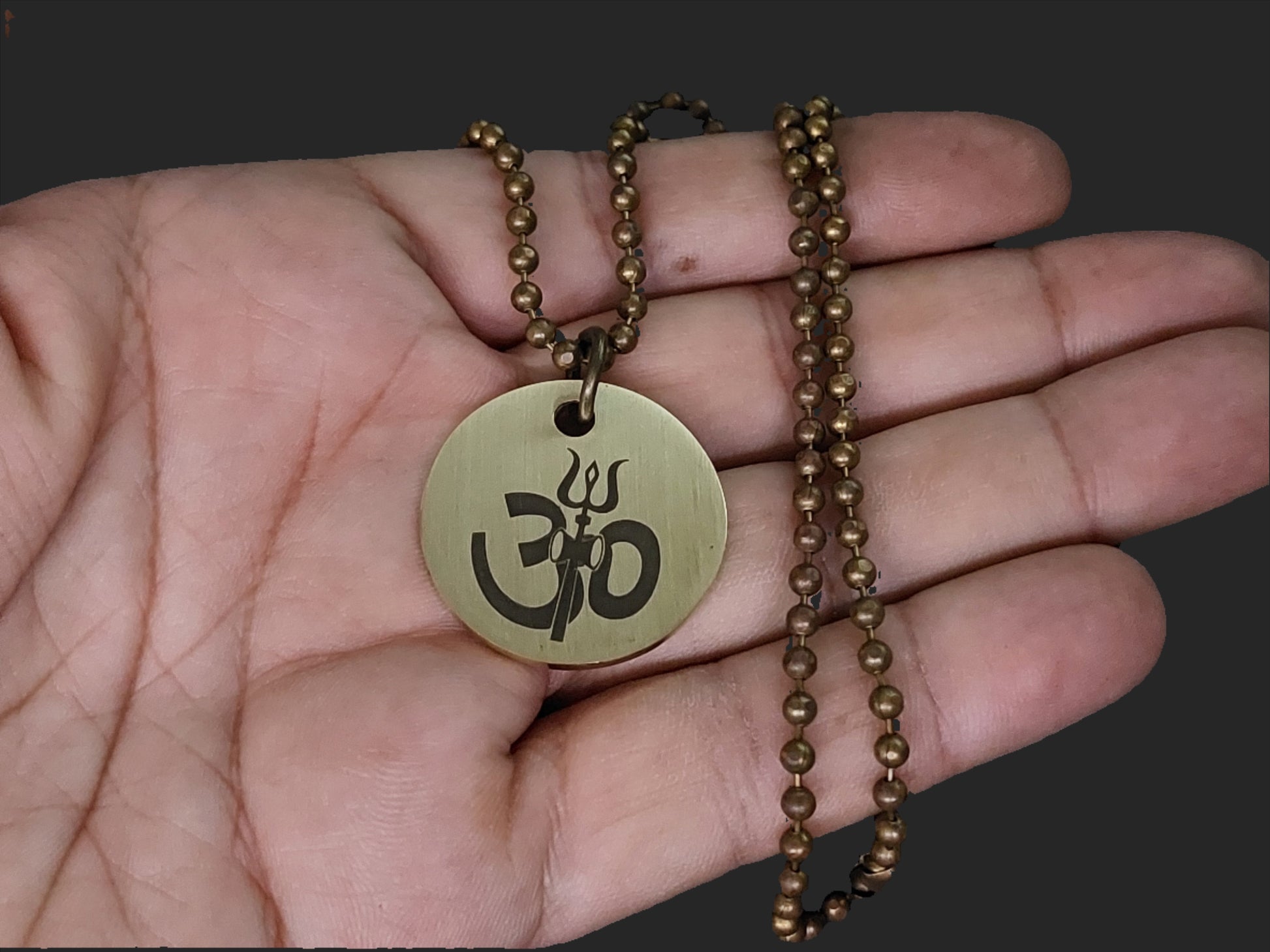 Lord Shiva's Pure Brass Pendant with Om and Mahamrityunjaya mantra engraved.