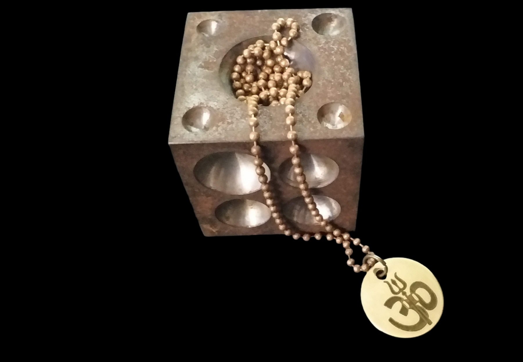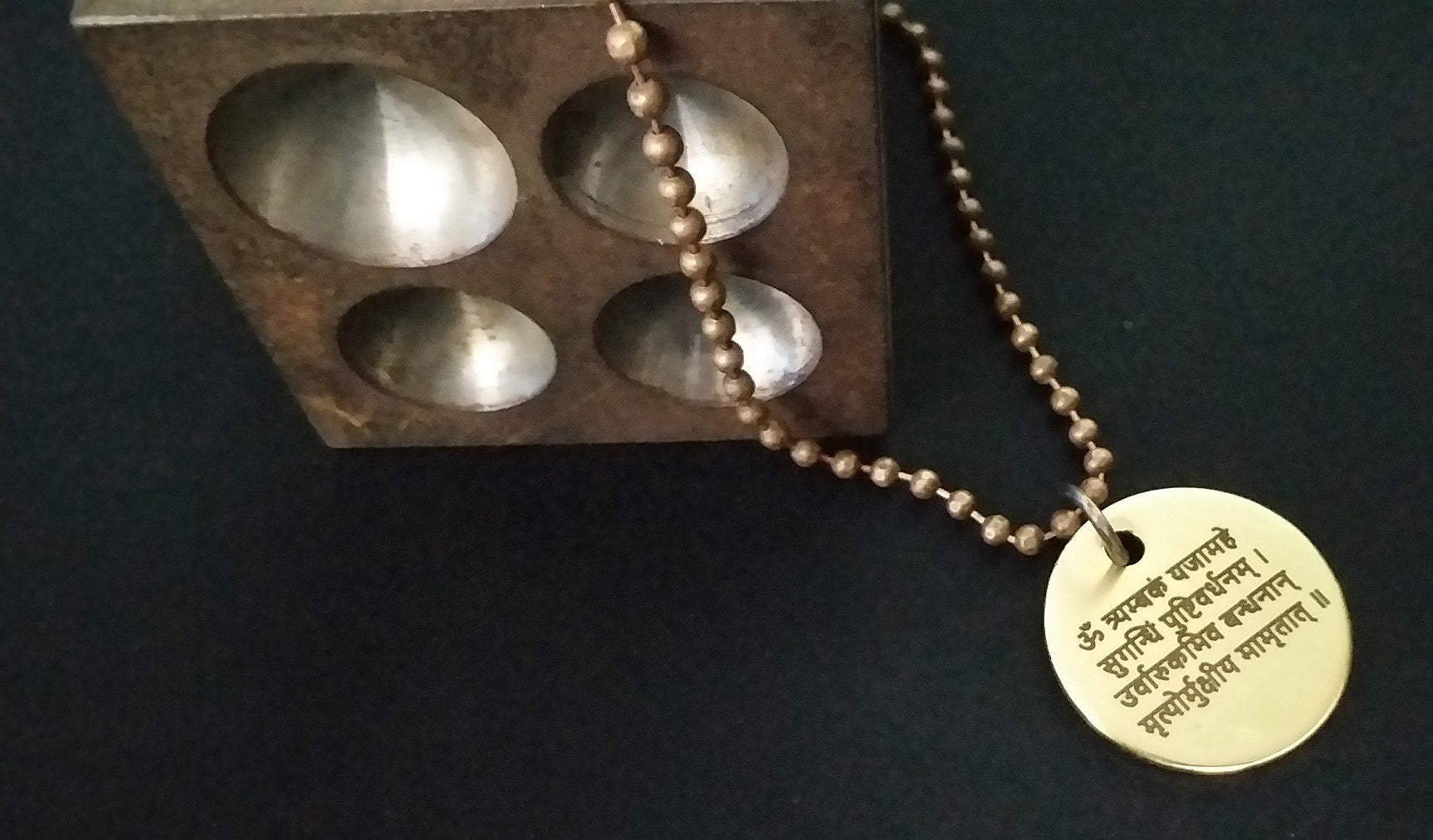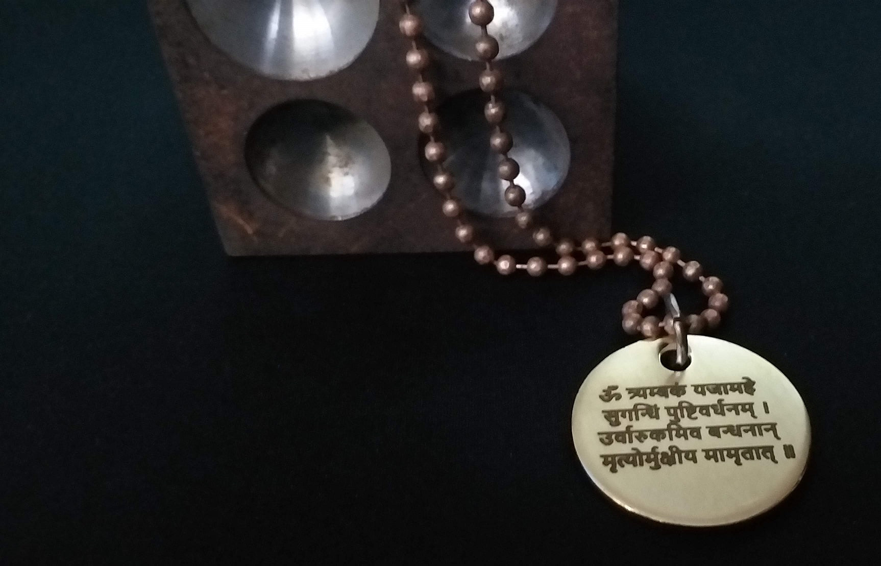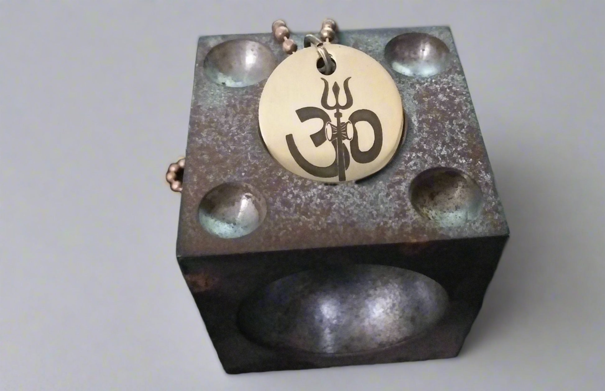 Lord Shiva's Pure Brass Pendant with Om and Mahamrityunjaya mantra engraved.