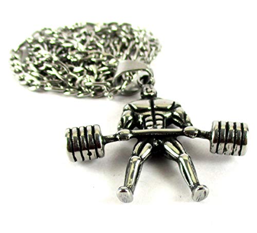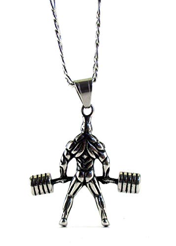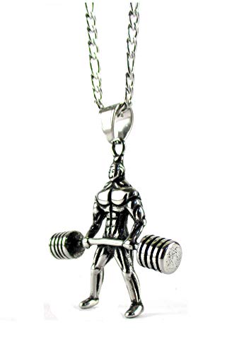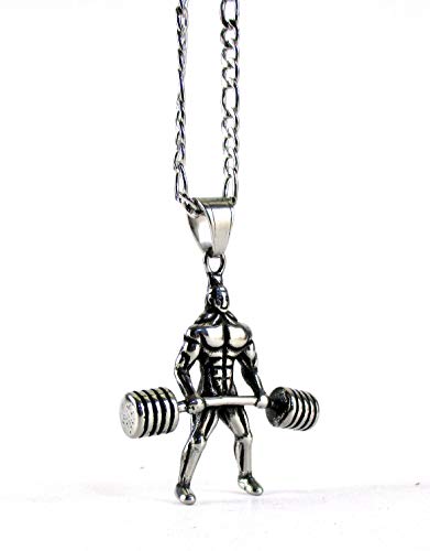 Streetsoul Weight Lifter Necklace Body Builder Power Lifter Necklace Stay Fit Gym Pendant Necklace Cool Stainless Steel Necklace for Men Jewelry