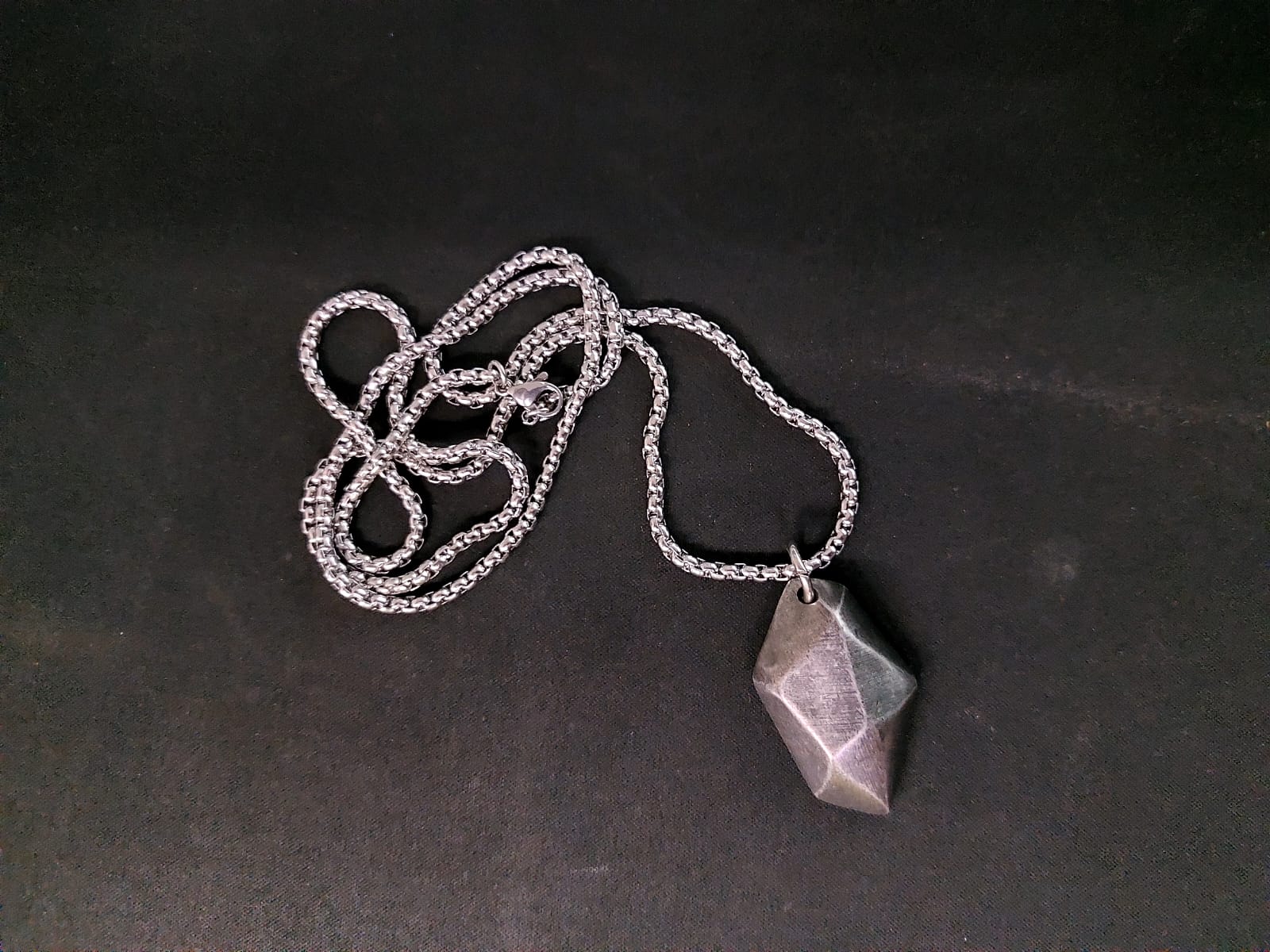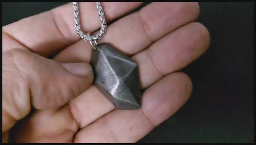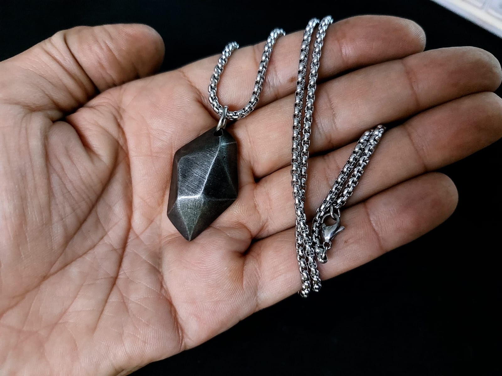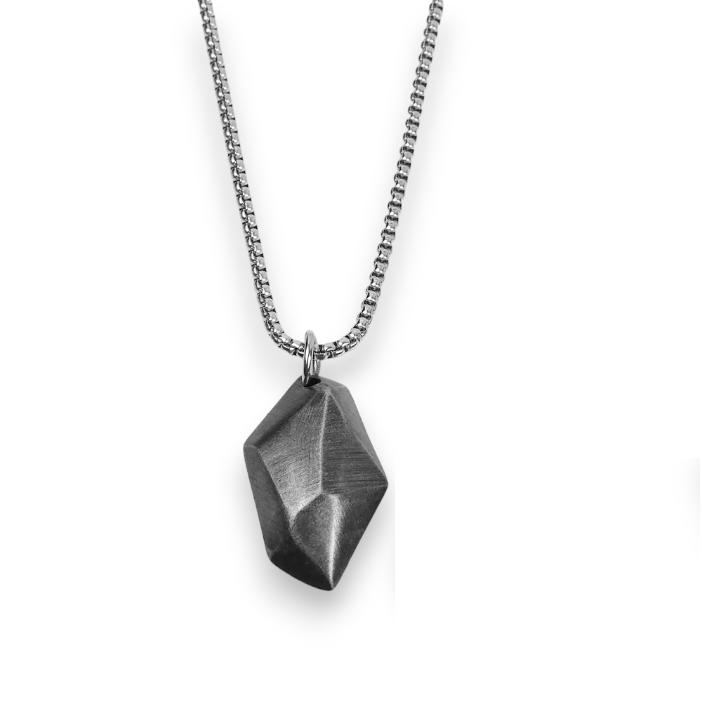 The Wishing Stone Necklace is a unique and imperfect steel pendant. The Wishing Stone resembles a mythical rock that is known to grant wishes when meditated on. This men's stone necklace is forged in premium grade 316L stainless steel and is waterproof, tarnish proof and hypoallergenic.